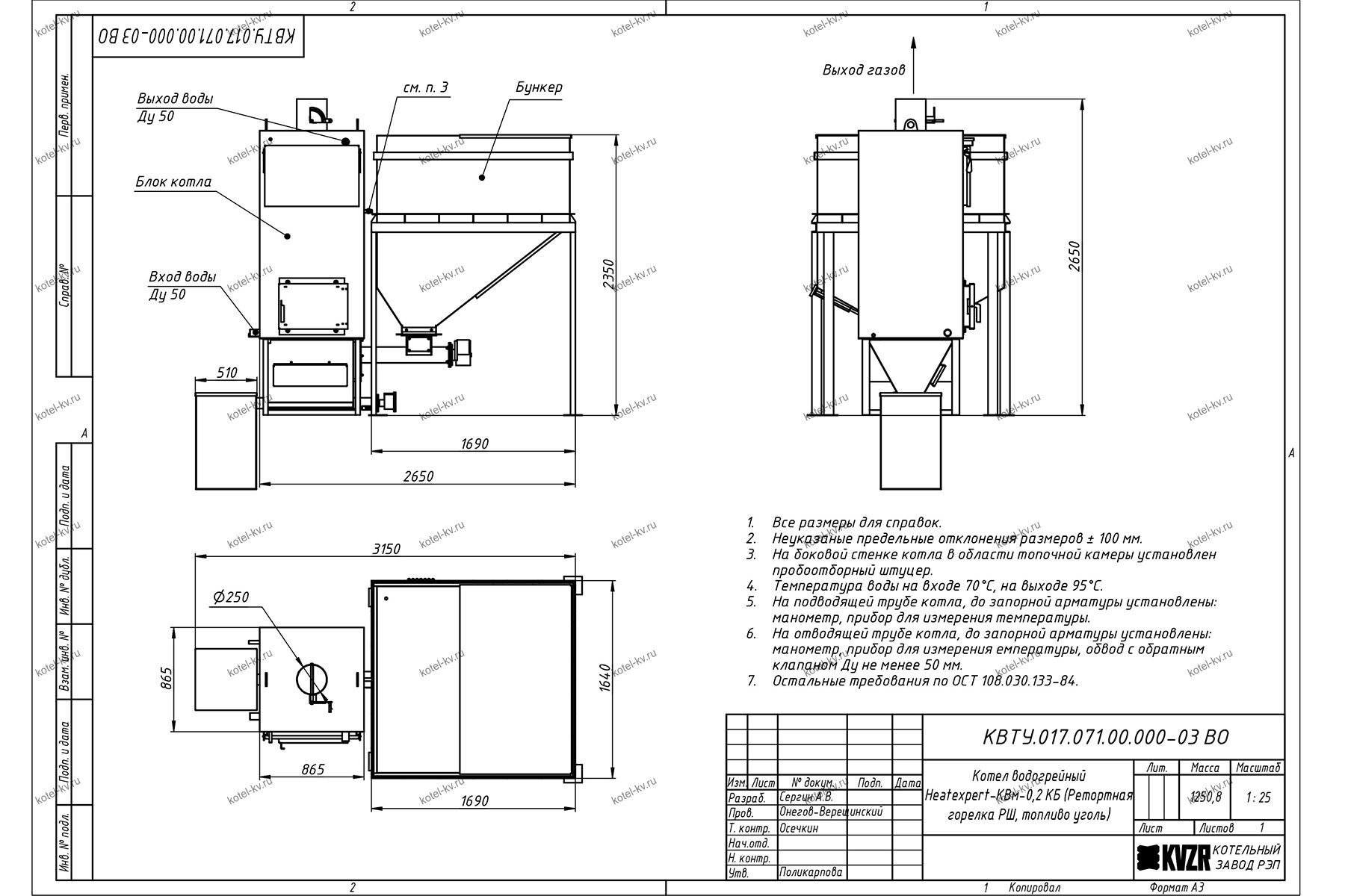 Конструкция автоматического котла на угле 0.2 МВт
